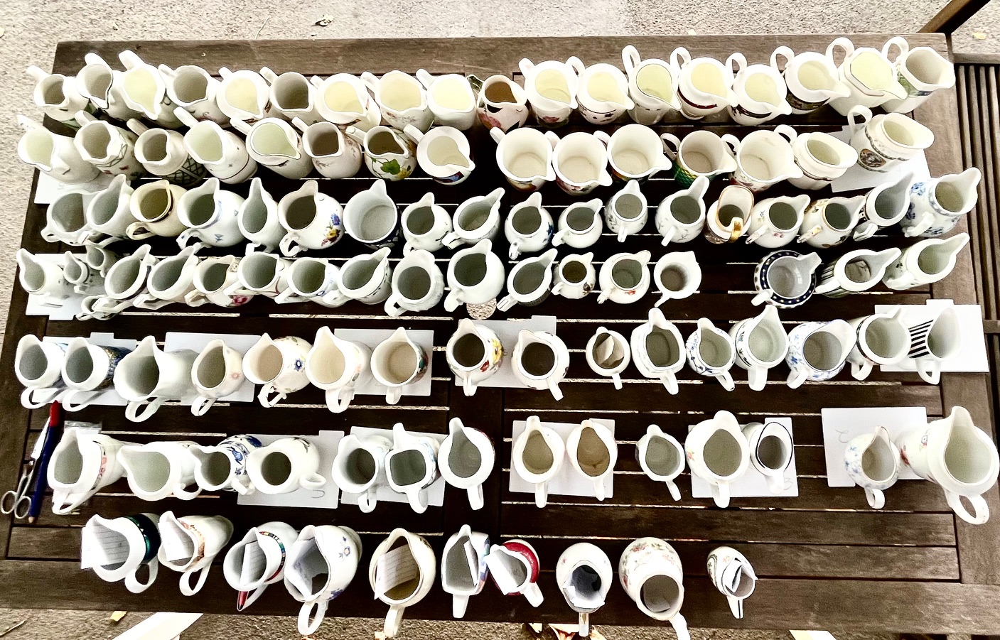 Die vorerst letzte Sammlung von verschiedenen Milchkännchen habe ich von der verstorbenen Künstlerin Inge Limburg aus Bullay an der Mosel erworben.